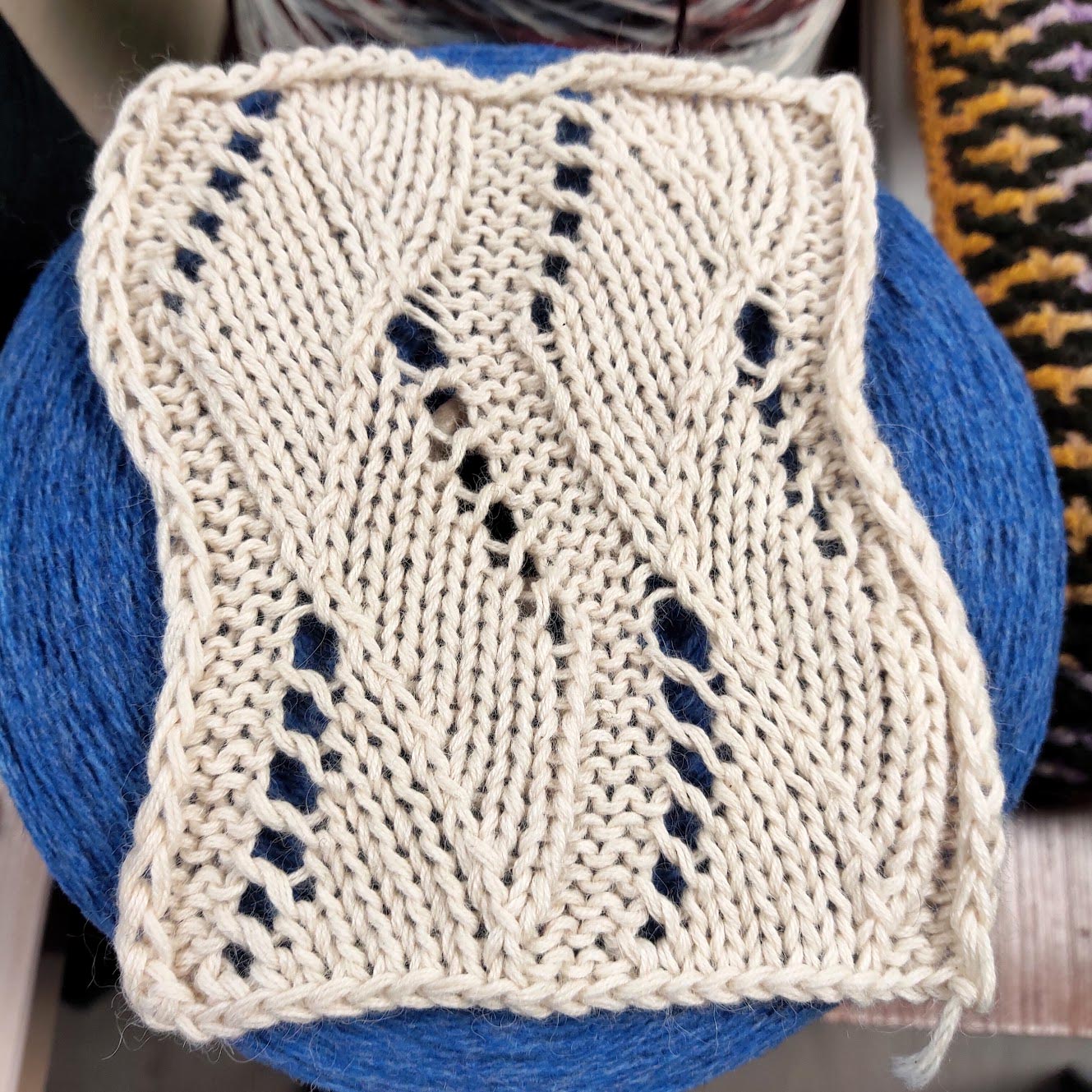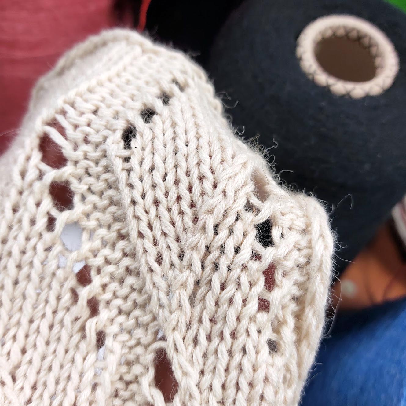 Мягкая и теплая пряжа, комфортная к телу, в лицевой глади косит. Образец связан в 4 нити на спицах 4.