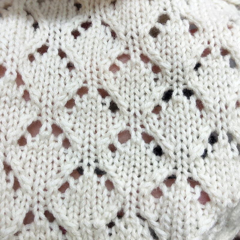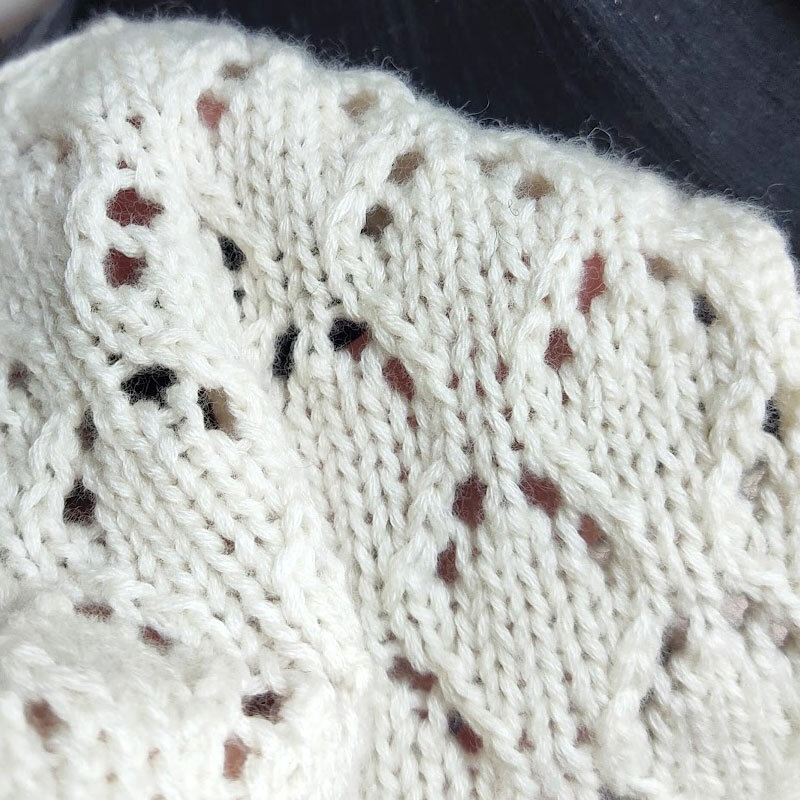 Мягкая пряжа с красивым пушком. Образец связан в 8 нитей на спицах 3. В лицевой глади может немного косить.
